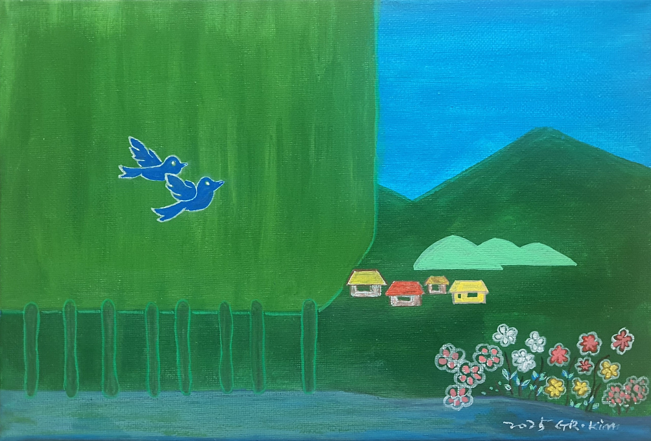 맑은 개울을 건너면 푸른 산이 있습니다. 작은 산봉우리 아래로 알록달록한 집들이 옹기종기 모여 있습니다. 개울가에는 들꽃들이 흐드러지게 피어 있고요. 마을의 푸른 숲에는 파랑새들이 날아다닙니다. 내 마음속 '이상향'입니다.