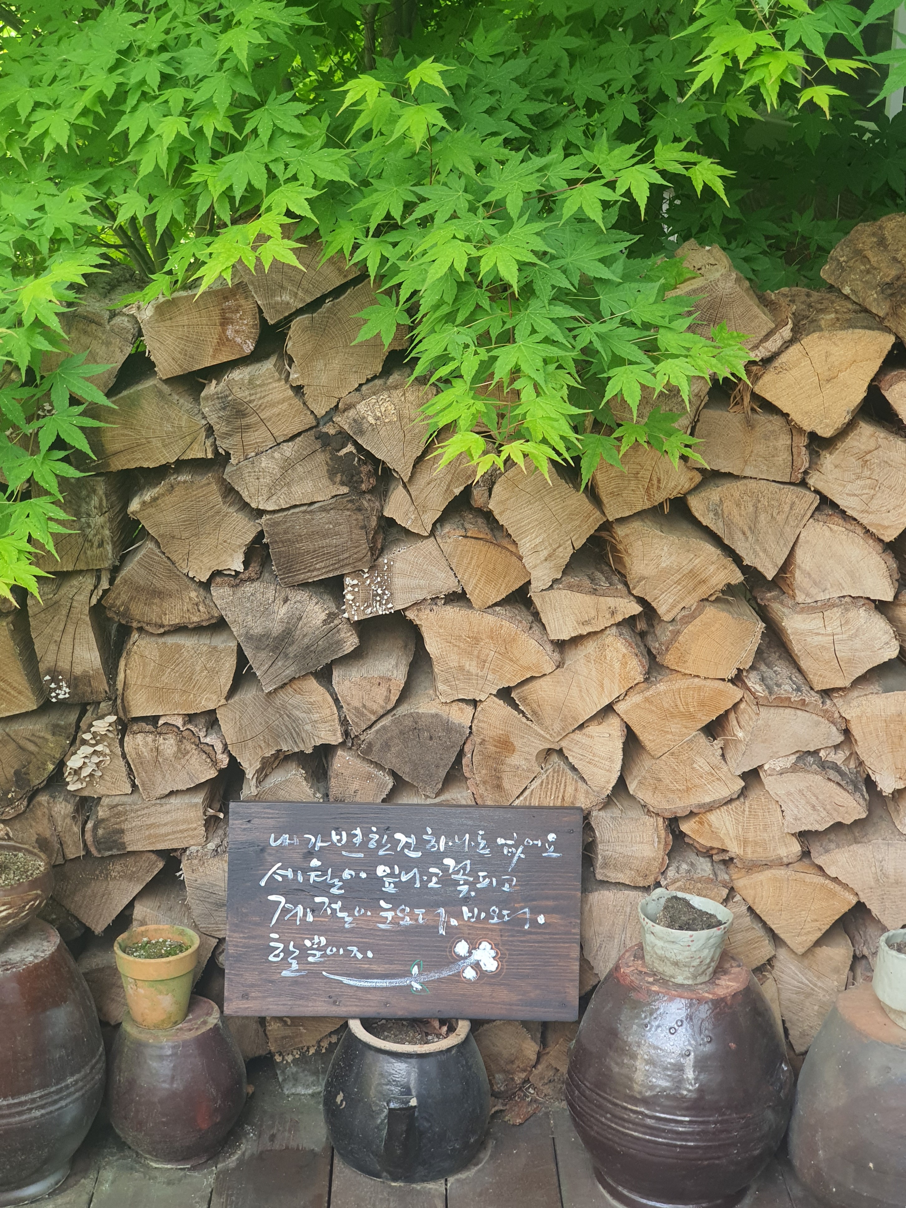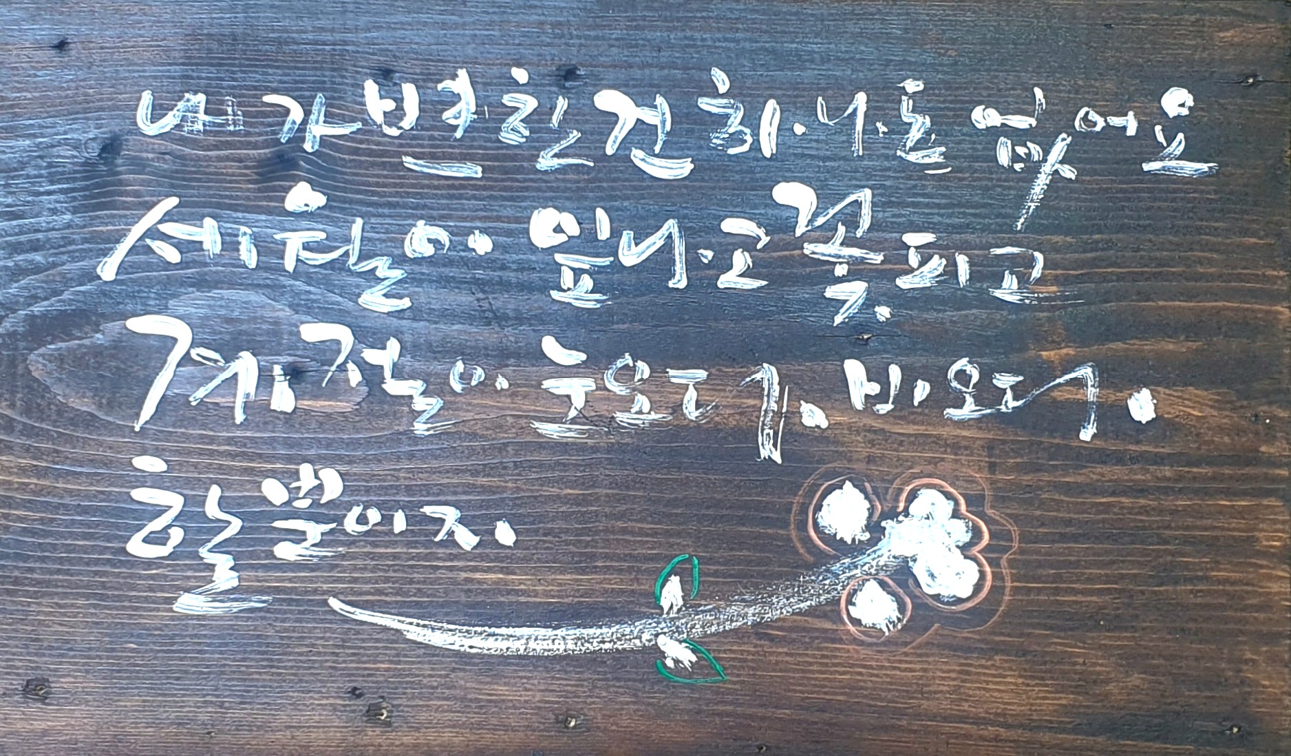 나무판에 손글씨로 써 '시골편지' 카페 입구에 놓았습니다.