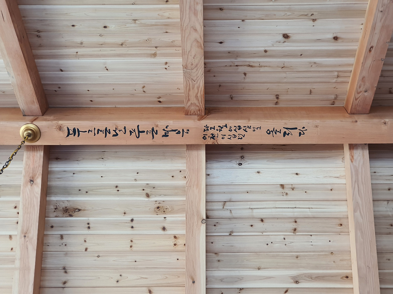 마룻대에 예전 방식 대신 한글로 ‘늘 푸른 날처럼, 늘 푸른 마음으로 좋은 집에서 잘 살라’는 뜻을 담아 ‘푸르른 날 푸른 마음’이라고 써 주었습니다. 예전처럼 시끌벅적한 상량식 잔치는 생략하고 상량문만 간소하게 올리는 모습이었습니다. 그나마 그것이 내가 보고 체험한 마지막 상량문이었습니다.