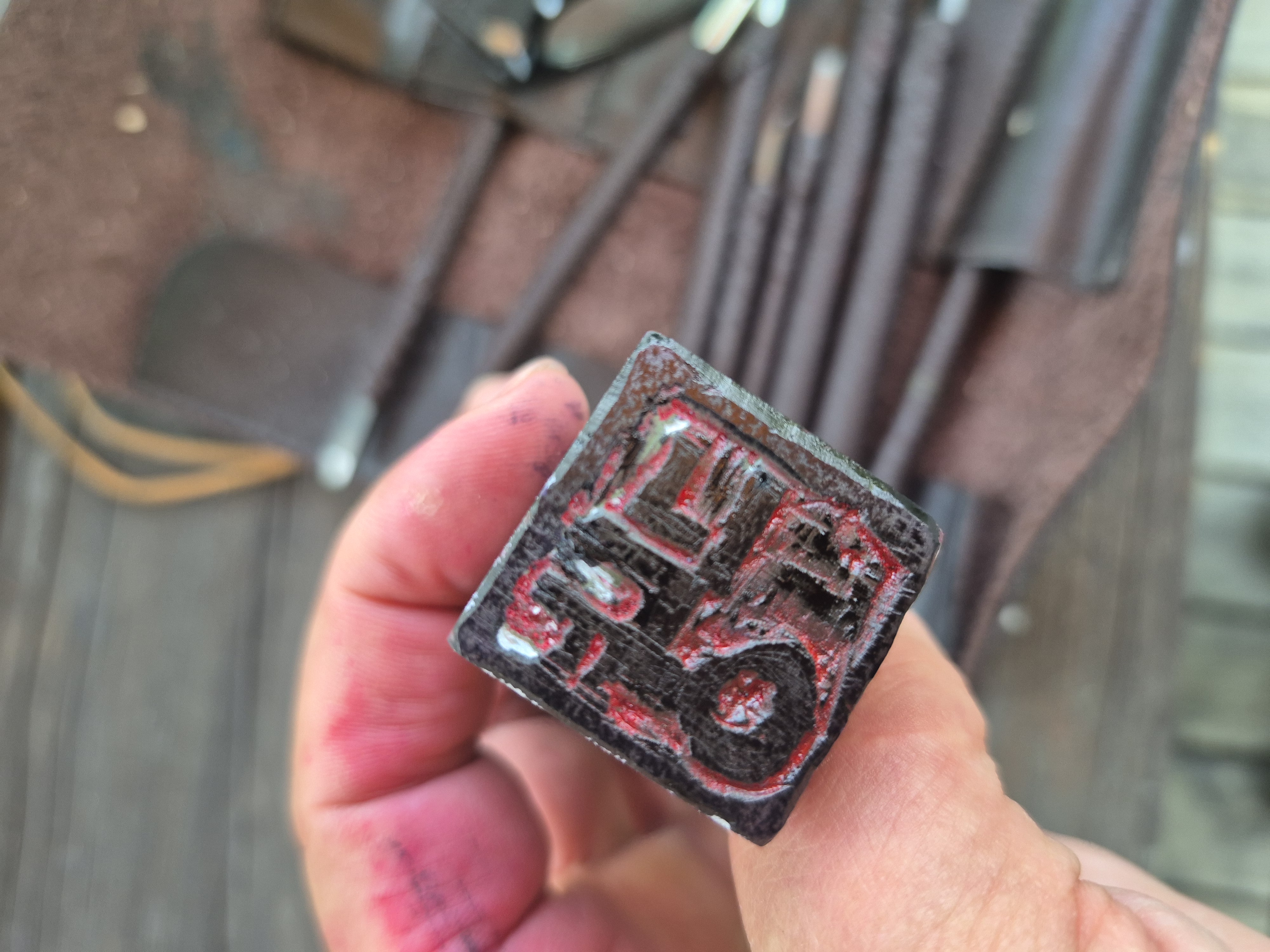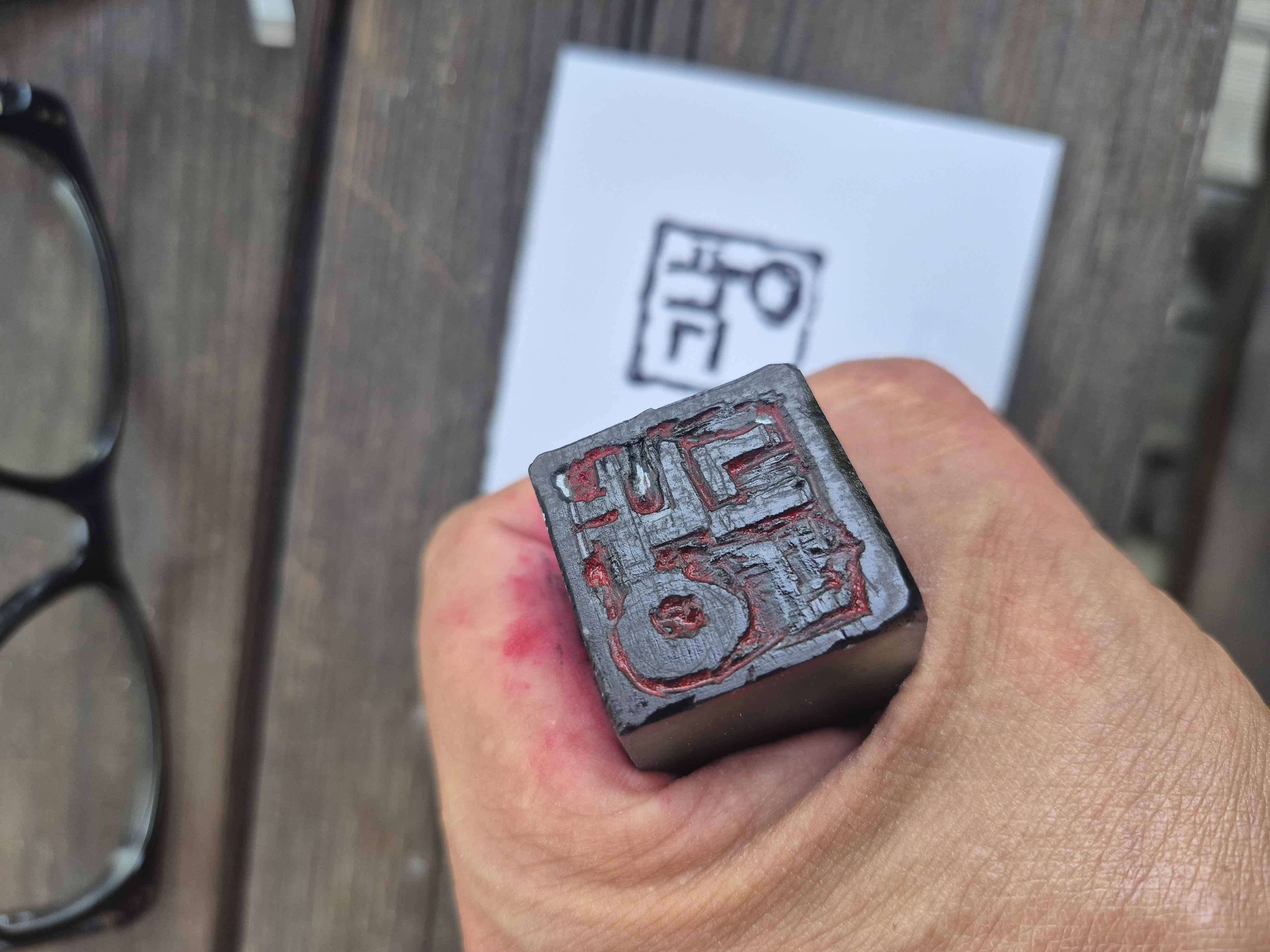 산마을서 독립출판으로 두번째 시집 '그냥,'을 내며, 타이틀 글씨를 어떻게 할까 하다 돌에 조각칼로 새겼다.